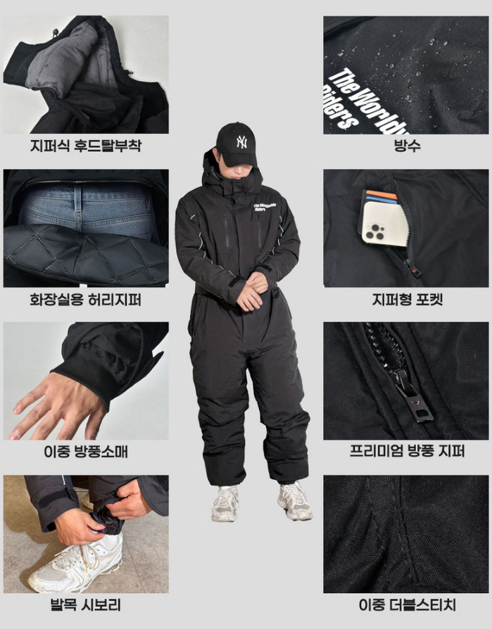 • 패션성을 최우선으로 생각하며, 일상복으로도 활용 가능한 라이딩웨어를 찾는 분: 일체형 방한복은 라이딩에 최적화된 기능성과 보온성을 제공하지만, 일상복으로 활용하기에는 다소 제한적입니다. 평소 패션 아이템으로도 활용 가능한 스타일리시한 라이딩 자켓이나 팬츠를 선호한다면, 이 제품은 기대와 다를 수 있어요.