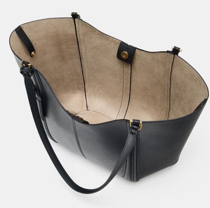자라 맥시 쇼퍼백은 이름처럼 넉넉한 맥시 사이즈를 자랑하는 대용량 가방이에요. 지갑, 휴대폰, 파우치, 태블릿 PC, 심지어 가벼운 옷가지나 장바구니까지, 데일리 필수품은 물론 예상치 못한 짐까지 여유롭게 담을 수 있답니다. 가방 내부에 금속 지퍼로 여미는 작은 수납 공간이 있어 중요한 소지품을 안전하게 보관할 수 있어 실용성도 만점이랍니다. 이 자라 쇼퍼백 하나면 더 이상 이것저것 여러 가방을 들고 다니지 않아도 된답니다.